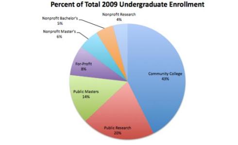 I don’t see public four-year colleges represented as an entity on the chart. Do you know if it’s lumping public bachelor’s-granting institutions in with community colleges, or are they a vanishingly small sector of their own because so many public traditionally undergraduate colleges have started adding a few graduate programs to their offerings?
