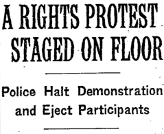 That’s a July 16, 1964 Times article about a demonstration at the Republican National Convention in which twenty civil rights activists were ejected from the floor for disrupting the proceedings in protest of Barry Goldwater’s nomination for president.